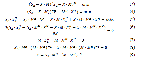 Для нахождения искомого массива значений амплитуд и фазы при помощи формулы 2 придем к уравнению, представленной в формуле 3: