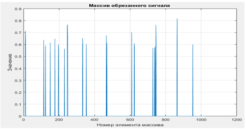 На рисунке 5 изображен сигнал после ограничения исходного сигнала по порогу.