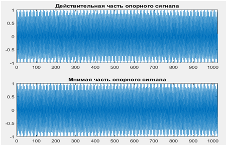 На рисунке 15 приведены графики действительной и мнимой части первой строки матрицы опорных сигналов.